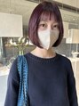 あごラインミニボブにチェリーピンクカラー。ぱつっと重めにカットしています。ピンク、パープル、レッドを混ぜて艶のある鮮やかななカラーになっています。