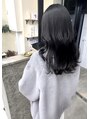 カット/フェイスレイヤーを入れたミディアムヘアカラー/透明感のあるブルーブラック