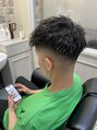 ミドルラインまでのスキンフェードに強めのツイストスパイラルパーマをかけました。フロントが割れやすいお客様なので割れないよう工夫してます