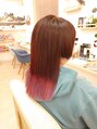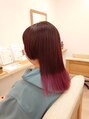 サイド耳たぶ下でバックセクション鎖骨下あたりの長さの2セクショングラデーションラウンドワンレングススタイルです☆カラーリングでは毛先2ブリーチ後にネオンピンク、トップにワインレッドを入れたグラデーションカラーでう潤い艶な美髪色に☆