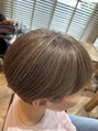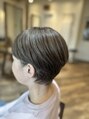 白髪ぼかしハイライトで白髪を馴染ませてます。カラーはイルミナカラーで透明感。耳にかけるとタイトなショートスタイルに。マッシュショート イルミナカラー ハイライト