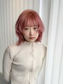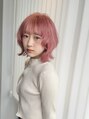 ブリーチ一回からできるピンクオレンジカラーです。カットは顎下3センチのボブスタイルです。