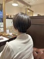 丸いシルエットが可愛いマッシュショートです。毛先を少し軽めにしてシャープさを残す事で、重すぎず顔まわりに馴染みやすくしました。