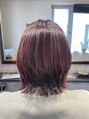 レイヤーが入るので、首が長く見え小顔効果◎女らしさUP◎横からも後ろからも頭のかたちがよく見えます◎絶壁がきになる方にも◎ピンクカラーで柔らかい印象に!丁寧な接客、カウンセリングを心がけています!気になることや悩みなど気軽に相談してください!
