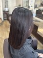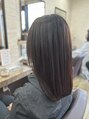 カラーからマニキュアに移行されたお客様。毛先はカラー毛ですが、マニキュアが全体に馴染んできています。基本的に頭皮につけないので、伸びてきた時白い部分が目立ちにくいです。頭皮や髪のダメージが気になる方にはお勧めなカラーです☆[志木・新座]
