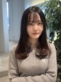 顔まわりにレイヤーを入れたミディアムスタイルです。毛先にぽってり感を出しているのでシースルーバングで抜け感を演出しています。
