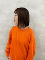 肩につかないぎりぎりのシンプルなロブ顔まわりを少し動きが出るようにローレイヤーを入れ、前髪をオン眉ぱっつんを合わせてカジュアルに