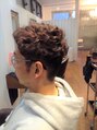 ショートベースの長さに、刈り上げてツーブロックにして、レイヤーグラデーションにカットして、質感毛量調整を施して、軽さと収まりを良くしています。パーマを自然な感じにかけて、アッシュ系ブラウンで色を入れて、トリートメントをしました。