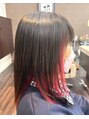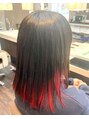 インナーカラーセミロングレッド×ブラック顔周りエンドカラー/ホットペッパービューティー