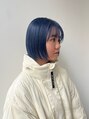 ぷつっとボブにブリーチ1回でできるネイビーブルーカラー。肌が白く見える、色落ちも可愛いのでオススメです!