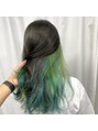 - ブリーチ2回後、インナーにターコイズブルー、ペールグリーン、ライムイエロー