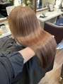 ホームカラーの繰り返しで進んだエイジング毛は、カラーのダメージと相まってかなりセンシティブな髪質ですが、それに合わせた薬剤選定や施術を施すことで、安全に癖を伸ばしていくことが可能です。