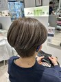 ハイライト、チャコールグレーカラー×刈り上げボブスタイル