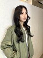 オリーブブラックにレイヤーカットのスタイルです◎ブリーチなしでできる暗めカラーなので、職場が厳しい方にもオススメカラーです!レイヤーはお顔まわりに入っているので、内巻きワンカールでも可愛いですし、写真のように38mmのコテで外巻きしても◎