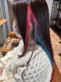 表面はダークベージュにインナーはネオン系のトリプルインナーカラーです!ケアブリーチでダメージを軽減させながら施術。チャレンジしやすいデザインです!もちろんベージュやグレーなど王道カラーもご用意あります!#インナーカラー#ネオン