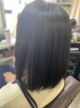 アルカリを使わず酸性の領域で縮毛矯正を行いますので本来の縮毛矯正より痛みはないです。ダメージ毛や細い毛の方にオススメです。
