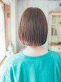 流行でもある重めのプツっとボブになります!少し髪を耳にかけることでスッキリとした印象に見られます!カラーはナチュラルなブラウン系になっています!前髪は今とても流行っているフルバングにカットしています!