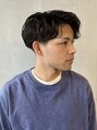 サイドと後ろの刈上げは0,8mmからのテーパーフェードになってます。パーマはダウンパーマで中間から毛先にかけて後ろに流れるように毛流れを作るパーマです。もともと膨らみやすい髪質の方にオススメです!
