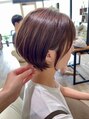 前下がりショートボブスタイル30代40代50代の大人女性におすすめの髪型です。色味を楽しめる白髪染めで艶カラー!香草カラーでダメージ少なくオーガニックカラーも!ハイライトやリタッチもおすすめです。癖が気になる方は縮毛矯正のご相談下さい。