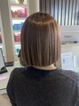 大人ハイライト、ローライトのアッシュベージュカラー。Aujuaトリートメントのしっかりケアで、艶髪に。