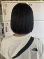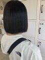 重めボブで、ツヤ感を出すために濃いグレーと、赤み消しで濃い緑も少し入っています