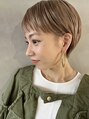 バング、襟足、サイドを短くしつつも重さや丸みが残るよう計算されたコンパクトショート。メンズライクになりすぎないベリーショートで差をつけるデザインに。ハイトーン 丸みショート 大人ショート 小顔立体カット 束感ショート ショートボブ オン眉ショート
