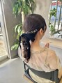 流行りのタイトヘアアレンジをベロアリボンと金箔でより華やかに♪