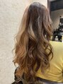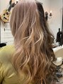 人間はみな二面性を持っています。光と影。明るい方はブリーチをして、ミルクティーベージュをうすーくのせてあります。暗い方は6レベルのモノトーンカラーで、アッシュやグレイほどくすみが強くない、まろやかな柔らかなカラーです。