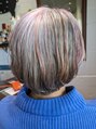 ランダムにハイライトをいれてさりげないピンク。おしゃれグレイヘア