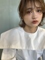 肩くらいで長さ設定したボブスタイル根元付近から柔らかいウェーブがでるように巻いてますカラーはモーブベージュで柔らかい質感に○