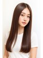 オリーブグリーン系ブラウンのカラーリングあえてワンレングスベースにして毛先までツヤを演出