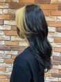 - フェイスフレーミング/バングカラー/ケアブリーチ/ブルーブラック/艶カラー/コテ巻き/髪質改善