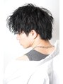 縦に細かく落ちるパーマで上げ下ろし出来るレングスになっております!!使うワックスや前髪上げ下ろしによって変化の出せるスタイルです!!
