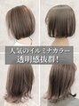 透けるような透明感のミルクティーグレージュ。こちらはカラー剤でダブルカラーをしています。ブリーチよりも傷まず、ワンカラーよりも圧倒的に透明感がでるので、現状の髪色が暗めの方、いつもオレンジになってしまう方はこちらがおススメです♪
