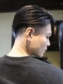 大人な雰囲気に低めのフェードをonパキッと分けずに、ナチュラルに分けて毛流れを作ります。
