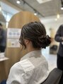 1つにまとめているので首元すっきり!シニヨンを少し崩して可愛さも出しています。【向日町】 【白髪ぼかし】 【オーガニックカラー】 【ヘアセット】 【髪質改善】