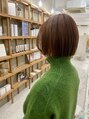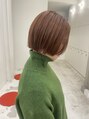 襟足ギリギリのミニボブヘア。前髪は少し短めの前上がりな感じにして柔らかい雰囲気に。明るめのオレンジベージュで透明感をプラス(^-^)