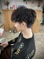 ナチュラル感のあるソフトマッシュカットで束感をだすため毛先を軽く毛量調整をし、無造作なスパイラルパーマをあて色気のあるクール男子の完成^_^
