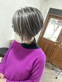 影の部分とハイライトの部分をはっきりだす寒色よりのコントラスト筋の太さ等はお客様と相談しながら作りました白髪ぼかしからコントラスト系のハイライトまで様々なデザインさせて頂いております!是非ご指名ください!