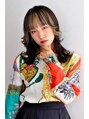 前髪カットをしたサイドの髪にレイヤーカットを入れて、外に巻いていくと昭和感がでてオシャレ!前髪にアクセントなマーブルカラー☆黒髪とブリーチのコントラスト。