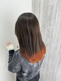 毛先をブリーチしてからビビットなオレンジをかぶせたスタイルです!ダメージ抑えるななケアブリーチがオススメです!