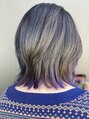 ブリーチ履歴にロイヤルパープルをオンカラー♪ブリーチは3回ほど施術しておりますベースカラーは暗髪デザインのグレー系◎
