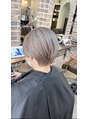 ブリーチでのWカラーで作るミルクティグレージュ。ブリーチは2回以上がオススメです。ショートが一段と引き立つハイトーンなミルクティカラー