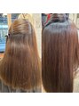 極力0ダメージでナチュラルに仕上がるストレートです。お一人お一人の髪質に合わせた薬剤なのでダメージした髪やエイジング毛などにもかけれます。縮毛はダメージすると思っている方にも是非試して頂きたいです。お待ちしてます♪