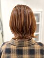 イヤリングカラーもオレンジなオレンジカラーなくびれヘア♪全体はブリーチはしていませんが元々明るい髪10レベル以上の髪に染めてこのくらいの明るさになっています。元の明るさによってはダブルカラーをオススメします^ ^