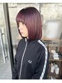 前回表面のみをブリーチした部分を濃いめピンクにカラーリングしたアンブレラカラー。ボブスタイルに相性◎。