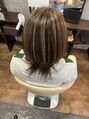 《SUN》ハイライトカラーレイヤーミディアム毛先パーマ