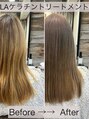 クセが気になるけど、透明感があるカラーがしたい人に向け「ストレートヘア+透明感カラー」を手に入れたい方にオススメです。縮毛矯正ではなく、ケラチンタンパクの効果でツヤツヤでふわっと自然なストレートヘアになれる薬剤と技術です。