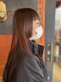 サイドあごラインで後ろとつなげないウルフで個性派に♪3Dブリーチ部分にレッドオレンジを!