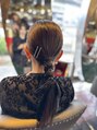 タイトなローポニーテールタイトな編みおろしにお持ち込みのベロアリボンを巻き付けて、流行りのシンプルローポニーテールに仕上げました!キラからのピンがポイントになってより華やかに見えます!